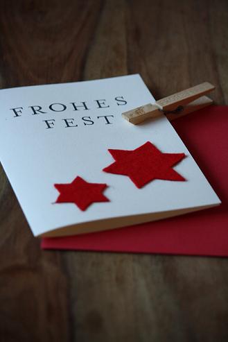 - Mit den Buchstabenstempeln könnt Ihr nun einen Weihnachtsgruss oben auf die Vorderseite der Karte stempeln (zum Beispiel "Frohes Fest").